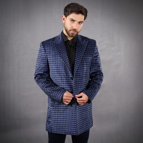 پالتو مردانه مدل مخمل چهارخانه یقه بلیزر رنگ آبی