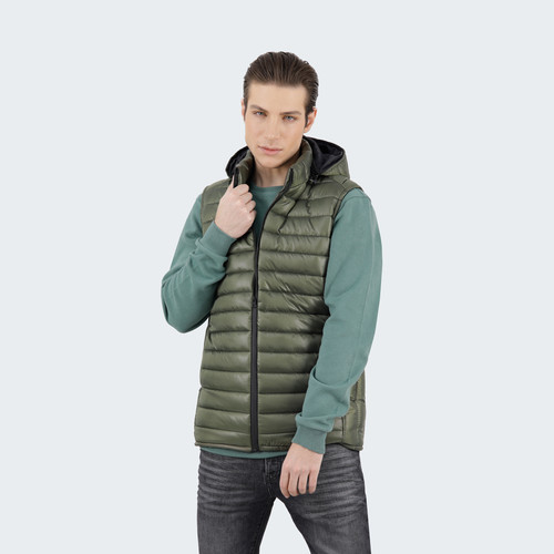 جلیقه پاییزه مردانه جوتی جینز مدل کلاهدار کد 80821 رنگ سبز