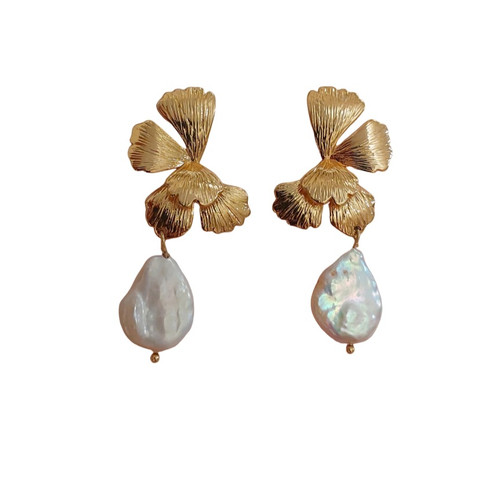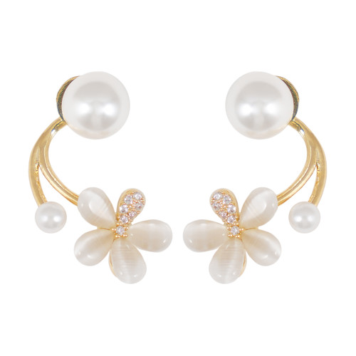 گوشواره زنانه مدل گل و مروارید کد 102011428